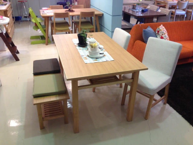 ¢¡POTHOS Dining Table + Bench + Chairx2 Set(Table:W1350 D800 H720)