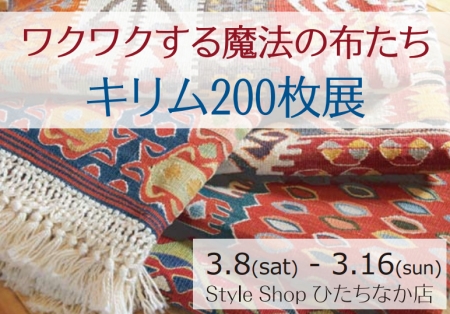 3月8日(土)よりひたちなか店にて開催しておりました「キリム200枚展」は、16日(日)をもちまして9日間の会期を終了いたしました。