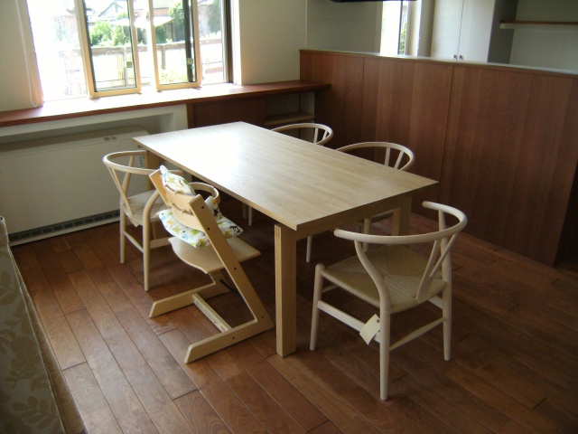 姉妹店『karf』のオリジナルで、無垢材を使用したダイニングテーブルです。